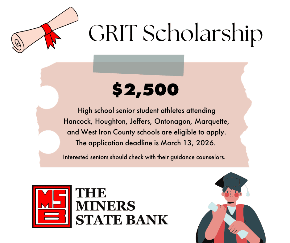 GRIT is the drive to push forward, no matter the challenge. The Miners State Bank’s GRIT scholarship celebrates student athletes who balance discipline and determination.