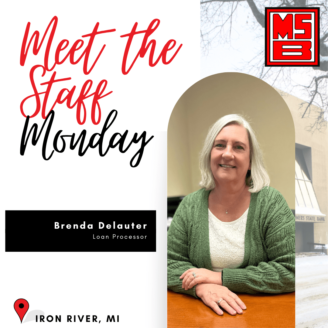 Brenda has been with The Miners State Bank for five years, currently working as a loan processor in our Iron River location. Outside the Bank, Brenda enjoys spending time with family, reading, or binge watching a Netflix show. In the summertime, she loves spending time in the sun. About living in Iron River she says, “I love the small hometown feel and seeing all the beauty the UP has to offer.”